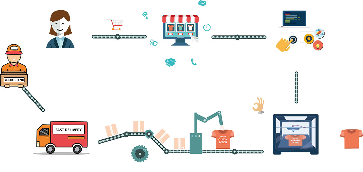 Place your orders via API, CSV or directly online. We print the visuals asked by your customer on the product.
